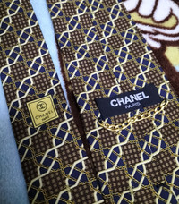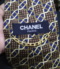 Chanel gold chain iconic silk necktie Made in Italy 100% silk Adult size Excellent Condition ... No flaws Payment▪️Accept PayPal or stripes Worldwide shipping with FedEx express 3 to 7 days item will be received Special price for bulk deal ❤️ Price below 80$ include shipping I'm using economy shipping 14 to 21 Days item Will be received Tq for visit my item 😘