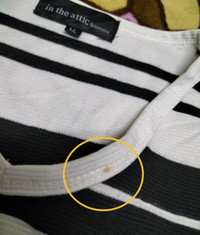 In the attic stripes v-neck Made in china Armpit 19 / Length 27 inch Condition 8.8/10 good used.. just has a little bit stain Please check your measurements on shirt do not rely size on tag Payment ▪️ accept Paypal or stripes Worldwide shipping with FedEx express 3 to 7 days item will be received Bulk deal are welcome 🤝 Price below 80$ include shipping I'm using economy shipping 14 to 21 Days item Will be received Thank you for visit my item ☺️