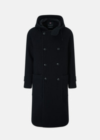 Background Named in honour of Vice Admiral Horatio Nelson — naval commander, tactician, and enduring British icon — the Horatio Coat takes its cues from garments built for purpose and permanence, reimagined through a contemporary lens. Cut from 100% wool, the coat offers dependable warmth and comfort. It features button-down front fastenings, two front patch pockets, and a discreet internal buttoned pocket — ideal for keeping essentials close. A fixed hood with drawstring lends a subtle maritime sensibility, offering both practicality and a hint of naval tradition. The silhouette is relaxed but composed, designed to be layered with ease — over tailoring, knitwear, or a roll neck on colder days. There’s a quiet robustness to it, a sense of utility elevated through careful detailing and fine materials. The double-breasted coat, with its broad lapels and structured front, has long been a staple of naval outerwear — prized for its wind-blocking overlap and commanding silhouette. Originating in 19th-century military uniforms, this style was engineered for life at sea, where warmth, functionality, and ease of movement were paramount. Design Details - Made in England - Relaxed fit - Two front patch pockets - One inner buttoned pocket - Front button down fastenings - Fixed hood with drawstring - Style code: MS5483 Fabric & Care - Main: 100% wool - Linings: 100% cotton, 100% acetate - Dry clean only - Do no machine wash - Do not tumble dry - Cool iron - Do not bleach