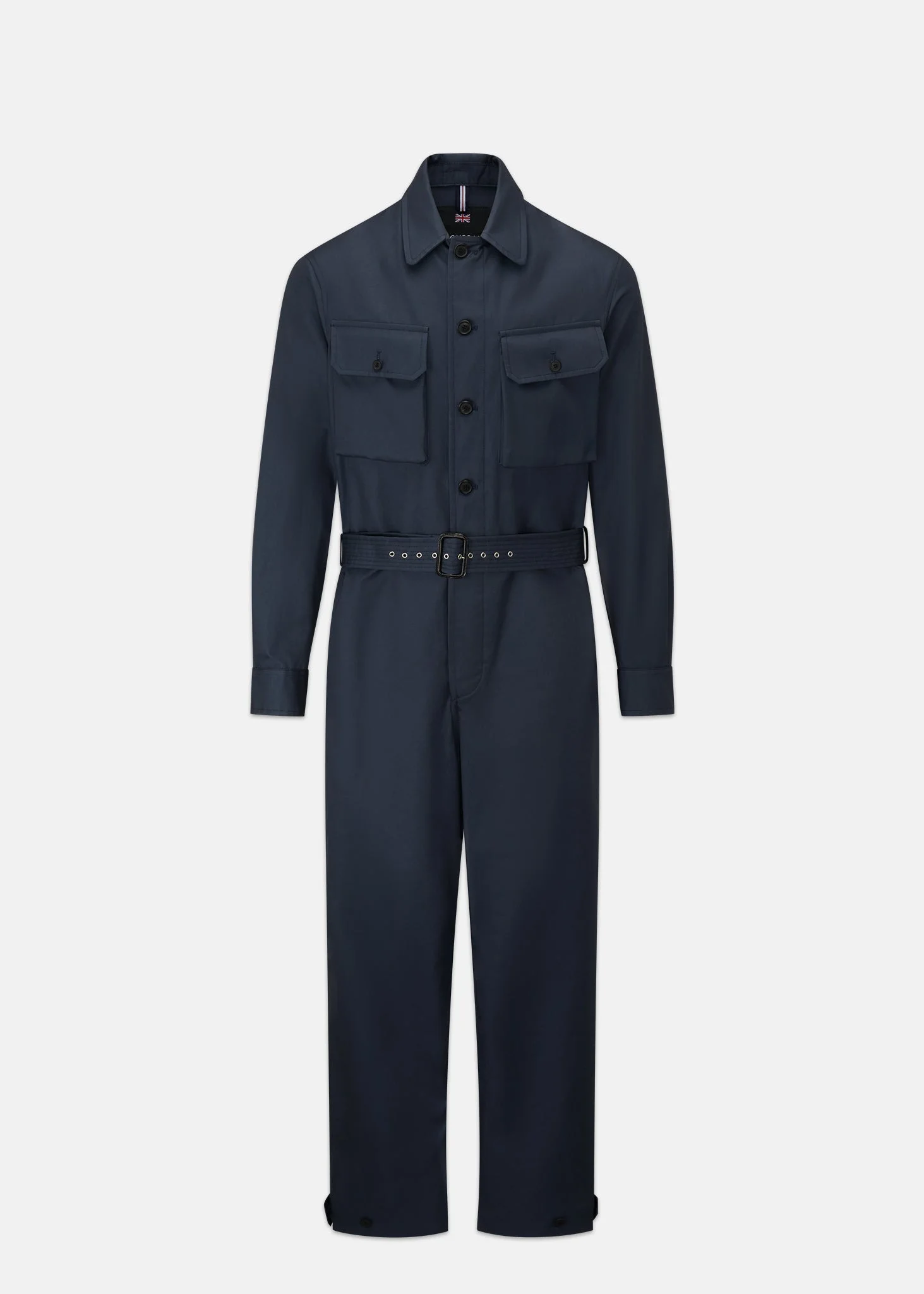 Background Inspired by late 1800s workwear, the Miles Overall is made from a premium cotton, balancing rugged utility with understated refinement. Named in homage to British racing driver Ken Miles, the overall embodies a spirit of quiet confidence and precision engineering. It features a pointed collar, front button fastening, and an adjustable belt and cuffs, allowing for a personalised fit. Thoughtfully placed pockets on the chest, sides, and back provide ample storage, making it a practical yet considered addition to any wardrobe. Design Details - Made in England - Regular fit - Three front pockets; two angled, one button - One back button pocket - Front button fastening - Button cuffs - Adjustable button ankle cuffs - Waist belt with leather buckle - Style code: MS5488 Fabric & Care - Main: 100% cotton - Machine wash at 30°C - Do not tumble dry - Do not dry clean