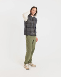 Background Offering a layer of warmth without the heaviness of an overcoat, our Roger Check Gilet is made from a double-faced wool mix fabric with a subtle brown check outer and plain navy interior. Featuring a V at the neck, two large patch pockets and a three-buttoned front, this style is perfect to wear over knitwear or under a coat. Model is 6’1”, chest size 38” and wears a size M Design Details - Made in England - Double faced woven - Button closure - Large patch pockets - Style Code: MS5397 Fabric & Care - 48% Polyester, 36% Cotton, 16% Wool - Dry clean only - Do not machine wash - Do not tumble dry - Do not bleach - Cool iron