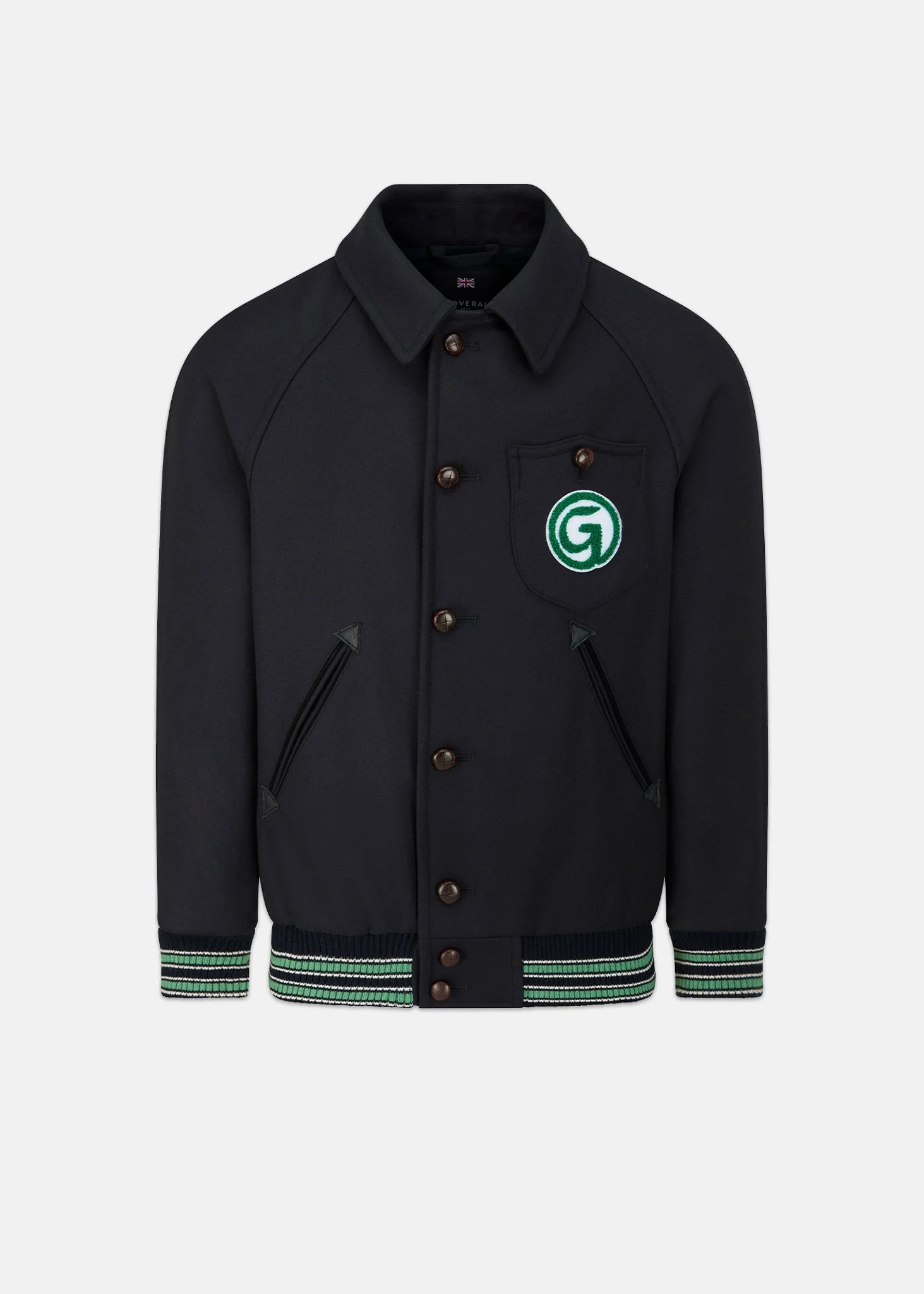 Background Named after Daley Thompson — Olympic gold medallist, decathlete, and one of Britain’s greatest all-round athletes — the Thompson Varsity Jacket is a celebration of versatility, strength, and understated flair. Cut from a wool-rich blend with a touch of cashmere, it offers all the structure you’d expect from a varsity silhouette, softened by a luxurious handle and refined detailing. It features button-down front fastenings, two angled hand pockets, a buttoned pocket, and a discreet internal chest pocket — useful whether you’re trackside, street side, or simply out and about. The silhouette is classic but not boxy, with just enough sharpness in the line to sit smartly over knits or shirts. The varsity jacket — or “letterman” — originated in the mid-19th century at Harvard University, where athletes were first awarded stitched letters to denote excellence in sport. By the 20th century, the silhouette had become a symbol of athletic achievement across American colleges: wool body, leather sleeves, striped ribbed hems — a garment as much about identity as performance. Over time, the varsity jacket made the leap from campus to street, adopted by subcultures and designers alike for its effortless blend of sport and style. Design Details - Made in England - Regular fit - Three front pockets; Two angled, one buttoned - One inner chest pocket - Button down fastenings - Real leather buttons - Style code: MS5484 Fabric & Care - Main: 75% wool, 20% polyamide, 5% cashmere - Lining: 100% acetate - Plain face, tonal check reverse - 850g/lm - Dry clean only - Do not machine wash - Do not tumble dry - Cool iron - Do not bleach
