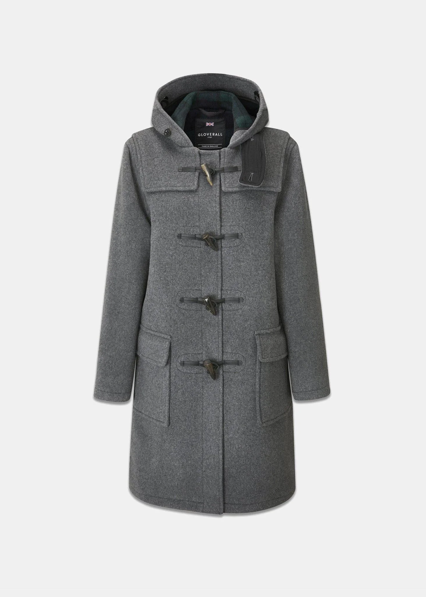 Background A considered nod to our roots, the Women's Freda Duffle takes its name from the Gloverall founding family. Expertly crafted in a double-faced Italian wool blend, it offers warmth and substance—right through to its button-adjusted hood. On milder days, wear the hood down to reveal a flash of its tartan interior—a subtle detail that speaks to the coat’s thoughtful construction. Buffalo horn toggles and soft leather loops lend a refined finish, while a fixed shoulder cape and detachable throat tab ensure winter warmth without compromise. Design Details - Made in England - Regular Fit - Fixed shoulder cape - Detachable throat tab - Pancake hood - Knee Length - Inside patch pocket - Unlined - Buffalo horn toggles and leather loop fastenings - Style Code: LC3120 Fabric & Care - 80% wool, 20% polyamide - Plain face, tartan reverse - Fabric Weight: 960g/lm - Dry clean only - Do not machine wash - Do not tumble dry - Cool iron - Do not bleach - Contains animal product