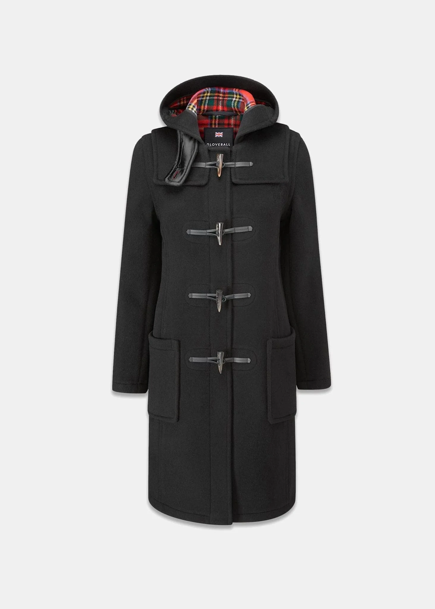 Women's Long Slim Fit Freda Duffle Coat Black Royal Stewart