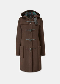 Background With its tartan interior and sturdy fixed shoulder cape, this duffle is equal parts eye-catching and functional. The fixed shoulder cape reinforces the coat and provides extra warmth, while oversized pockets keep hands cosy on cold days. Crafted from a rich wool blend, the double-faced cloth features a tartan interior. Layer this women's duffle coat over textured knitwear for a luxurious winter look. Design Details - Made in England - Slim fit - Knee length (average 97cm) - Unlined - Pancake hood - Detachable throat tab - Buffalo horn toggles and leather loop fastenings - Style Code: LC4330 Fabric & Care - 80% Wool, 20% Polyamide - Plain face, tartan reverse - Fabric Weight: 960g/lm - Dry clean only - Do not machine wash - Do not tumble dry - Cool Iron - Do not bleach