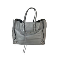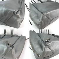 Pre-Owned 100% Authentic Balenciaga Veau Papier A4 Zip Around Grey Shoulder Bag RATING: A/B...Very Good, well maintained, shows minor signs of wear MATERIAL: calfskin leather, suede HANDLE: adjustable removable double grey leather DROP: 6.5'' to 7.5'' COLOR: grey CLOSURE: open , with 2 zipper pulls on the side EXTERIOR: little wrinkling on leather, small scuff mark on back near bottom ODOR: no HARDWARE: silver INTERIOR: grey suede and leather tiny black mark near bottom, little wrinkling on pockets DATE CODE: 357331-1215-G-1669 MEASUREMENTS: H 12'' x L 15'' x W 6'' INCLUDED: *Balenciaga removable mirror*Leather swatch *Balenciaga snap out bottom leather insert*black felt insert Please see all pictures to determine final condition, pictures are of actual item ! SHIPPING: will ship same day or next day SKU B732 1124