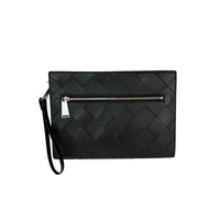 Bottega Veneta Black Leather Maxi Intreciato Document Case Wristlet Clutch Bag