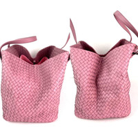 Pre-Owned 100% Authentic Bottega Venetta Nappa Intrecciato Large Seamless Rose Pink tote Bag RATING: B+...Very Good, well maintained, shows minor signs of wear MATERIAL: intrecciato leather HANDLE: double adjustable pink leather, 2 handle have wrinkling by holes DROP: 6''to 10'' COLOR: dark pink CLOSURE: hook and loop EXTERIOR: excellent ODOR: no HARDWARE: gunmetal INTERIOR: tan suede, some stains DATE CODE: B04212106C MEASUREMENTS: H 11'' x L 17'' x W 8'' INCLUDED: *felt insert to help organize and structure Please see all pictures to determine final condition, pictures are of actual item ! SHIPPING: will ship same day or next day SKU B779 0525