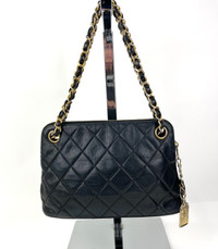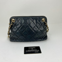 Pre-Owned 100% Authentic CHANEL Bag Quilted Lambskin Leather Chain Vintage Black Mini Shoulder Bag RATING: B/C... Good, shows some signs of wear MATERIAL: lambskin leather HANDLE : removable , double leather braided in chain DROP: 12'' COLOR: black EXTERIOR: has a bend across back near bottom ODOR: no HARDWARE: 24K gold plated , little wearing INTERIOR: 1 zipper pull is off but zipper runs smoothly, has whitish scuff marks, has 2 interior zippered pockets AUTHENTICITY CODE: 1136272 YEAR: 1986-1988 MEASUREMENTS: H 6'' x L 9.5'' x W 3'' INCLUDED: *Chanel authenticity card SHIPPING: will ship same day or next day Please see all pictures to determine final condition, pictures are of actual item ! SKU C77 0522