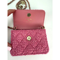Pre-Owned 100% Authentic Chanel Tweed Quilted Mini Flap Pink Chain Waist Shoulder Bag This bag is designed to be a Belt or Waist Bag but can be used as A Shoulder bag SAYS>>>With Compliments of Chanel RATING: A...excellent , near mint, has little to no signs of wear MATERIAL: tweed, leather and canvas STRAP: silver with pink leather woven and O Rings at various heights DROP: 17.4 longest WAIST: would fit up to a 39'' waist with three 3'' smaller adjustments COLOR: pink CLOSURE: magnetic snap EXTERIOR: excellent ODOR: no HARDWARE: silver, has protective coating on CC's INTERIOR: pink canvas, mint DATE CODE: L1XJUC31 MEASUREMENTS: H 3.9'' x L 5'' x W 1'' INCLUDED: *Chanel box and ribbon *Chanel dust bag Please see all pictures to determine final condition, pictures are of actual item ! SHIPPING: will ship same day or next day SKU C541 0725