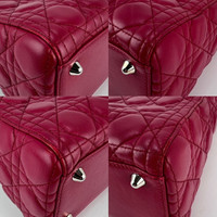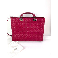 Pre-Owned 100% Authentic Christian Dior Lambskin Cannage Large Red Lady Dior Shoulder Bag RATING: B...Very Good, well maintained, shows minor signs of wear MATERIAL: lambskin leather STRAP: Dior Removable leather Strap 34.5'' long DROP: 17'' HANDLE: double leather, excellent DROP: 4'' COLOR: red EXTERIOR: tiny bend in front near bottom, corners have tiny scuff ODOR: no HARDWARE: silver, some has protective coating on \and letters have some scratches INTERIOR: brown Dior monogram fabric, very clean CODE: 01-MA-0172 MEASUREMENTS: H 9.7'' x L 12.5'' x W 4.3'' INCLUDED: *Dior Mini Dust Bag*Dior Removable leather Strap 34.5'' long SHIPPING: will ship same day or next day Please see all pictures to determine final condition, pictures are of actual item ! SKU C440 1124-D