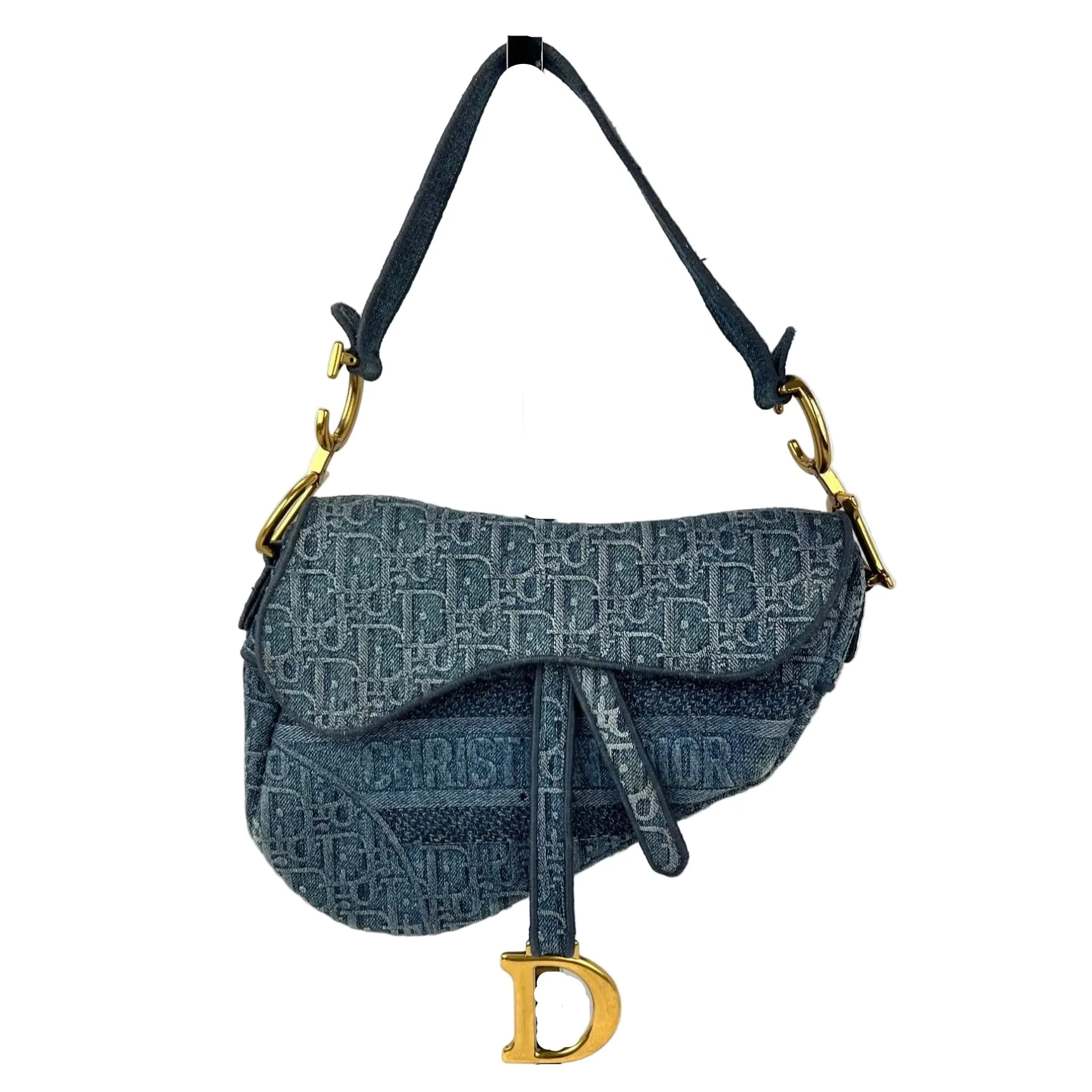 Pre-Owned 100% Authentic Christian Dior Oblique Embroidered Saddle Denim Blue Canvas Shoulder Hand Bag This is a very stiff material RATING: B...Very Good, shows some signs of wear MATERIAL: dior Embroidered canvas, leather HANDLE: single denim , fabric sticks up at ends, has a tiny wear on edges DROP: 7.5'' COLOR: blue, white EXTERIOR: has some whitish marks but seems like part of the denim design ODOR: no CLOSURE: magnetic HARDWARE: antique golden, has some light scratches, INTERIOR: a small light brownish stain on back inside CODE: 02 MA 0179 MEASUREMENTS: H 8'' x L 10'' x W 1'' No Dust bag SHIPPING: will ship same day or next day Please see all pictures to determine final condition, they are of actual item ! SKU B820 1225
