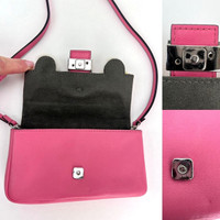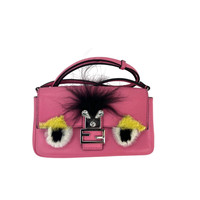 Pre-Owned 100% Authentic Fendi Monster Baguette Pink Leather Micro Crossbody Bag RATING: B...Very Good, well maintained, shows minor signs of wear MATERIAL: calfskin leather, fur STRAP: Fendi removable adjustable leather strap DROP: 22'' to 25'' COLOR: pink, yellow, white, black CLOSURE: magnetic snap EXTERIOR: maybe a little fuzz missing around eye area, few tiny indents on front ODOR: no HARDWARE: silver, some scratches INTERIOR: brown suede, 2 pink leather CC slots, 2 open pockets, very clean DATE CODE: SM 0354-508-168-8840 MEASUREMENTS: H 3.5'' x L6 '' x W .8'' INCLUDED: *Fendi removable adjustable leather strap Please see all pictures to determine final condition, pictures are of actual item ! SHIPPING: will ship same day or next day SKU B750 0125
