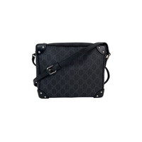 Pre-Owned 100% Authentic Gucci Black GG Supreme Selleria Square Messenger Bag RATING: B+...Very Good, well maintained, shows minor signs of wear MATERIAL: calfskin leather, coated canvas STRAP: black leather adjustable< has few tiny indents by 1 hole DROP: 19'' to 21'' COLOR: black, gray CLOSURE: double zipper pulls EXTERIOR: little scuffing on corner leather tabs ODOR: no HARDWARE: silver, minimal scratches INTERIOR: black canvas DATE CODE: 626363520981 MEASUREMENTS: H 7.5'' x L 9'' x W 3.5'' INCLUDED: *Gucci dust bag Please see all pictures to determine final condition, pictures are of actual item ! SHIPPING: will ship same day or next day SKU B790 0825