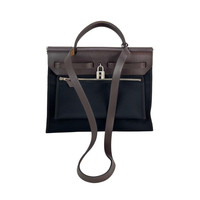 Pre-Owned 100% Authentic Hermes Toile vache Hunter Herbag zip 31 PM Black Ebene Shoulder Bag RATING: B...Very Good, well maintained, shows minor signs of wear MATERIAL: canvas, leather STRAP: brown leather DROP: 18'' HANDLE: single leather handle DROP: 3'' COLOR: black, brown CLOSURE: pull through tab EXTERIOR: couple few faint scuff lines on leather ODOR: no HARDWARE: silver, few faint marks on front hardware INTERIOR: black canvas , few faint marks on bottom DATE CODE: T TS 006 AU MEASUREMENTS: H 10'' x L 12'' x W 4'' INCLUDED: *Hermes removable key bell w/2 keys #101 Please see all pictures to determine final condition, pictures are of actual item ! SHIPPING: will ship same day or next day SKU B669 0424