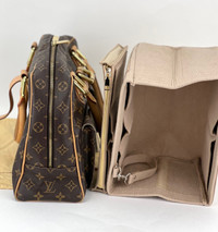 Pre-Owned 100% Authentic LOUIS VUITTON Manhattan GM Monogram Hand Bag RATING: B/C... Good, shows signs of regular use MATERIAL: monogram canvas, leather trim LEATHER : strap , trim and piping have marks and stains HANDLE: double leather, has faint dark hue, with some light marks and stains DROP: 7'' COLOR: beige, brown EXTERIOR: corners have a little black piping exposed, tiny wear on side pockets ODOR: no HARDWARE: golden, some scratches, little wear on pull tabs INTERIOR: suede lining, has pen marks and stains DATE CODE: FL4027 MEASUREMENTS: H 10'' x L 15.25'' x W 5'' INCLUDED: *LV Dust Bag*Non LV Tan Insert W/removable pouch 11x7x8 SHIPPING: will ship same day or next day Please see all pictures to determine final condition, pictures are of actual item ! SKU A994 0722-D