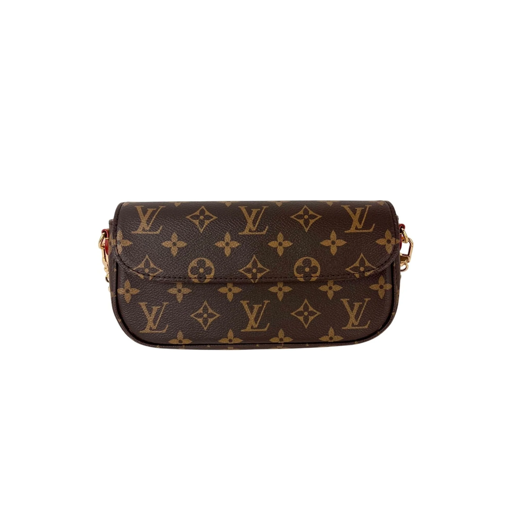 Pre-Owned 100% Authentic Louis Vuitton Monogram Ivy Wallet on a Chain Shoulder Bag RATING: A...excellent, near mint, has little to no signs of wear MATERIAL: monogram canvas, leather trim STRAP: unbranded golden strap 47'' long DROP: 22'' STRAP: LV leather adjustable removable strap 38.5'' long DROP: 17'' COLOR: brown, tan CLOSURE: magnetic snap EXTERIOR: excellent ODOR: no HARDWARE: golden, minimal scratches INTERIOR: brown canvas, very clean DATE CODE: after 3/1/21 no date code NFC TAG DETECTED MEASUREMENTS: H 4.7'' x L 9.3'' x W 1.7'' INCLUDED: *LV Box *LV dust bag*LV leather adjustable removable strap 38.5'' long *unbranded golden strap 47'' long Please Note This Does Not Come With The LV Golden Chain Strap Please see all pictures to determine final condition, pictures are of actual item ! SHIPPING: will ship same day or next day SKU A1404 1225