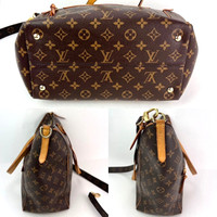 Authentic Pre-Owned Louis Vuitton Tournelle MM Monogram RATING: B...very good, shows some signs of use HANDLES: are pliable, have light stains and marks, red has started to wear off DROP: 8'' STRAP: monogram 39'' long DROP: 20'' LEATHER: on the light side, has some marks and stains EXTERIOR: 4 bottom studs show tiny wear ODOR: no HARDWARE: golden, scratches and scuff marks, little wear on O rings INTERIOR: very clean, few tiny very very light marks DATE CODE: AH1187 Made in France MEASUREMENTS: H 12'' x L 17''across top x W 6'' INCLUDED: *LV Monogram Strap 39'' long w/ 2 claw hooks Please see all pictures to determine final condition Pictures are of actual item! SKU A531 0720