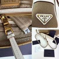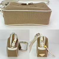 Pre-Owned 100% Authentic Prada Khaki Canvas Camera Crossbody Bag RATING: B...Very Good, well maintained, shows minor signs of wear MATERIAL: canvas, leather trim HANDLE: leather DROP: 19'' to 20.5'' COLOR: khaki, white CLOSURE: zipper EXTERIOR: excellent ODOR: no HARDWARE: golden INTERIOR: beige canvas, clean DATE CODE: 197 INCLUDED: *Prada Auth Card*Prada booklet and card MEASUREMENTS: H 6'' x L8.7 '' x W 3.2'' Please see all pictures to determine final condition, pictures are of actual item ! SHIPPING: will ship same day or next day SKU C389 0624