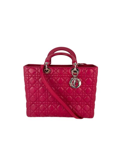 Christian Dior Lambskin Cannage Large Red Lady Dior Shoulder Bag
