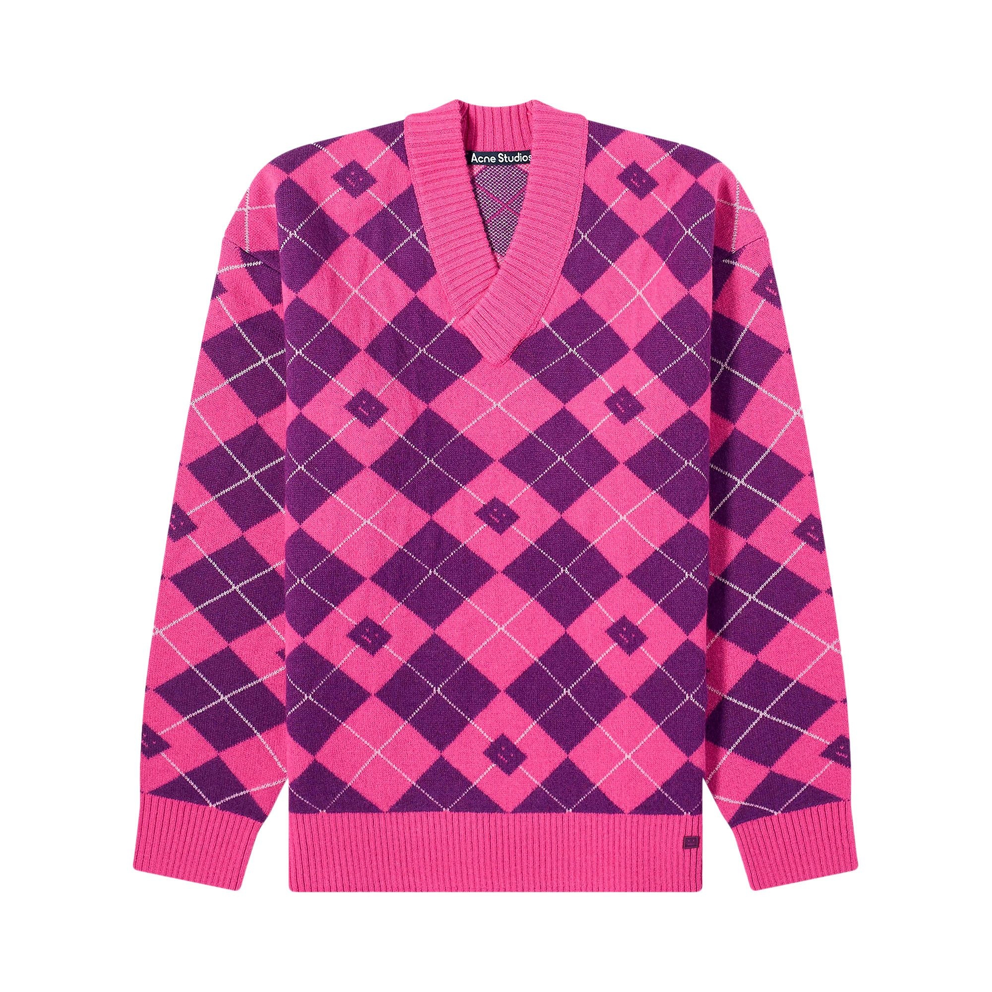 Argyle jacquard wool jumper - Bright pink/mid purple
