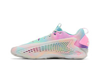 The adidas AE 1 Low '3SSB' dresses Anthony Edwards' premier signature shoe in a pastel color palette. The mesh upper is dyed in a gradient blend of turquoise, green, blue and lavender. Stability and containment are provided by generative TPU support wings, featuring a soft pink finish and a warped honeycomb structure for enhanced breathability. Performance benefits include a caged Lightstrike midsole with Light Boost cushioning in the forefoot and heel, as well as a grippy herringbone traction rubber outsole. UPPER MATERIAL TPU