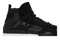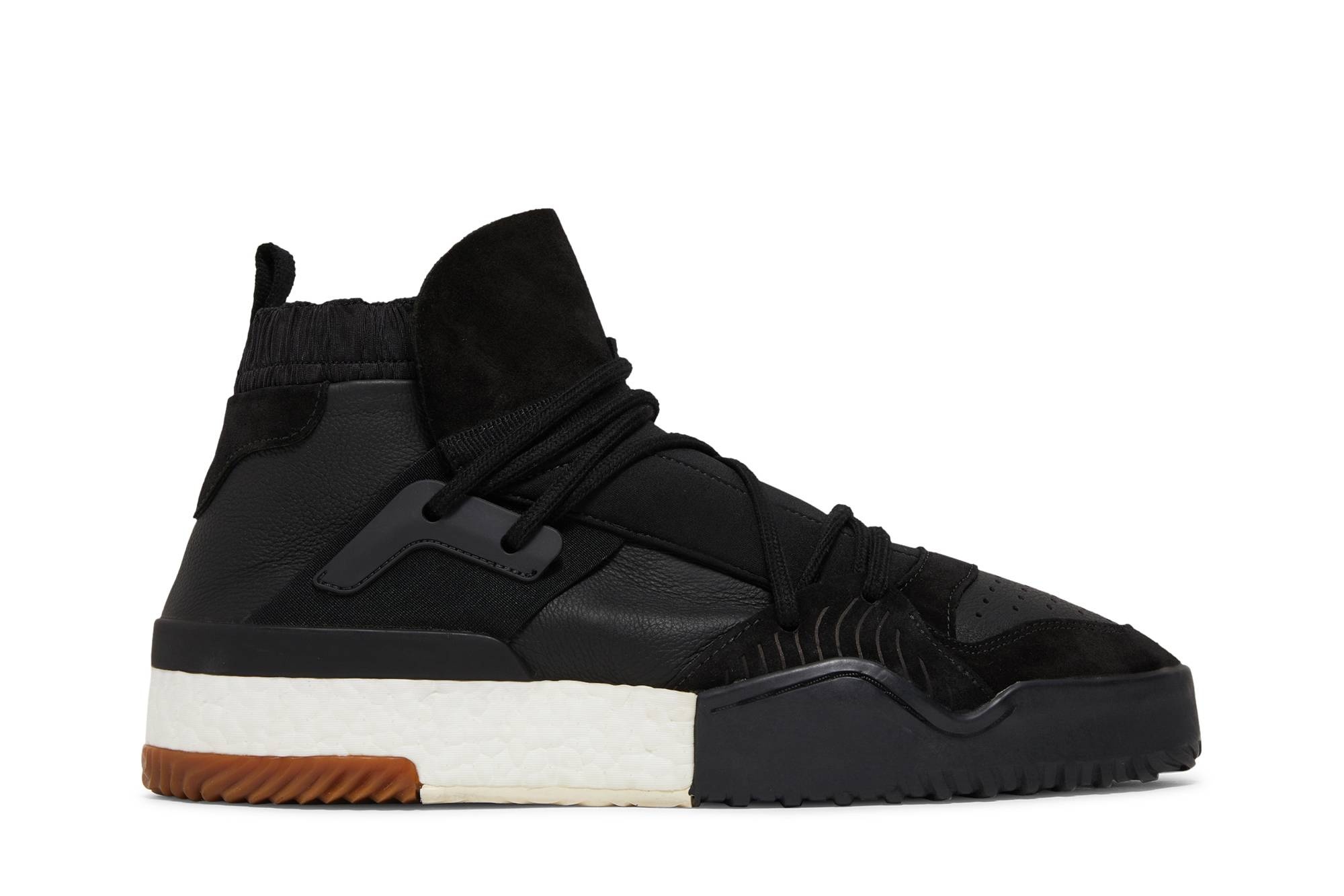 The Alexander Wang x AW BBall 'Black' is a high-top sneaker from adidas Originals and fashion designer Alexander Wang. The deconstructed design features a black leather upper with an elastic collar, perforated vamp, Boost midsole, and a tri-color rubber outsole. Released in April 2017, the sneaker also comes in a 'White' colorway.