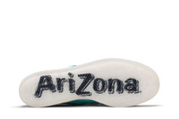 The Arizona x adidas Superstar ‘Teal White’ is taken from a four-piece collection featuring unique branding elements drawn from the iced tea brand. The iconic low-top makes use of a bright teal leather upper, marked with a debossed Aztec print and colorful embroidered graphics. An Arizona logo lands on the heel tab, while the company’s ‘Have an Iced Day’ tagline is integrated into smiley face lace jewels. The slogan is repeated on the translucent outsole of the left shoe. UPPER MATERIAL Leather