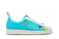 Launching as part of a four-piece collection centered around the popular beverage brand, the Arizona x adidas Superstar ‘Teal Yellow’ showcases mismatched color blocking on the all-leather upper. The right shoe features a bright teal finish on the tongue and lateral side panel, while the medial side is rendered in a subtle Chalk White tone. The left shoe features pink and mint green hues in the same areas. Metallic lace jewels depict a smiley face with the tagline ‘Have an Iced Day,’ a slogan that’s repeated on the icy outsole of the left shoe. UPPER MATERIAL Leather