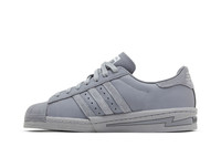The Neighborhood x adidas Superstar 'Cement Grey' showcases a neutral grey finish on a tumbled leather upper, featuring a suede back tab marked with Neighborhood branding. The Japanese label's skull and swords logo adorns the lateral heel, while 'NEIGHBORHOOD' is stamped on the quarter panel. A matching grey hue is applied to the rubber midsole, built with stitched sidewall construction and an embossed Tokyo wordmark along the heel. UPPER MATERIAL Leather