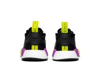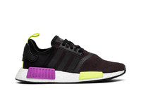 The adidas NMD R1 was originally inspired by running shoes of the 80s with a modern spin, featuring an all-black form-fitting knit upper for an adaptable fit, while an external heel counter reinforces support in the back. Lastly, the shoe rests on a full-length Boost midsole unit for maximum cushioning and all-day comfort with a Shock Purple EVA plug bumper for a pop of color.