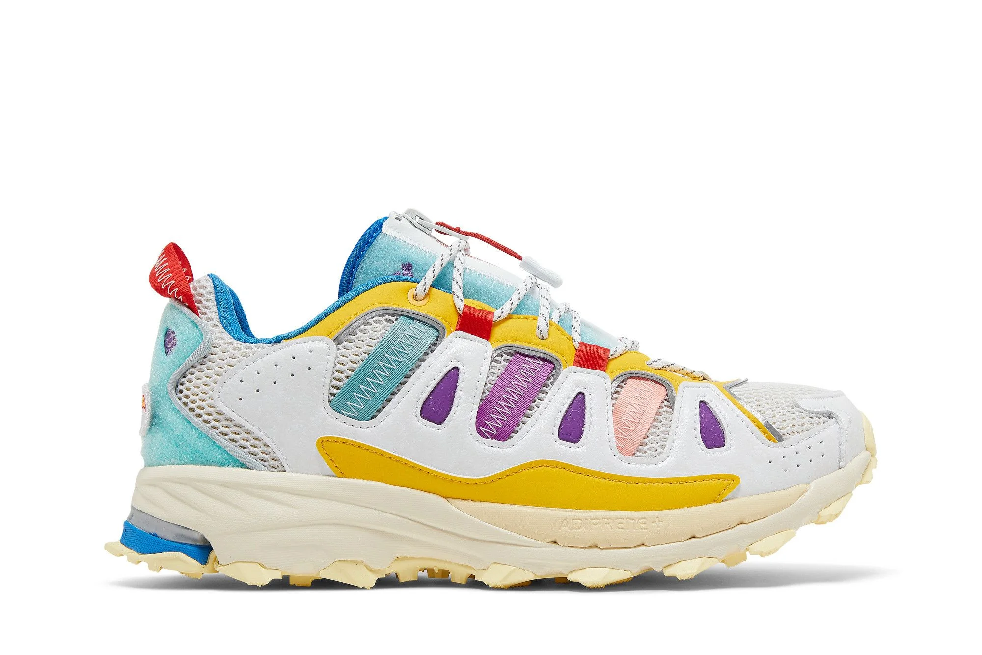 Round Two co-founder Sean Wotherspoon teams up with Mattel’s Hot Wheels on the adidas Superturf Adventure, featuring a retro ‘90s aesthetic and an outdoor-ready build. Made in part with recycled content generated from post-consumer waste, the upper features breathable white mesh construction with a tonal synthetic leather overlay. Signature Three-Stripes are formed with multicolor webbing straps in aqua, violet and pink, while Hot Wheels branding decorates the Velcro heel patch and tongue. The latter features a zippered outer layer that opens up to reveal ‘It’s Not the Same Without the Flame’ inscribed in yellow lettering. The sneaker sits on an Adiprene midsole, supported by a durable lugged rubber outsole. UPPER MATERIAL Mesh