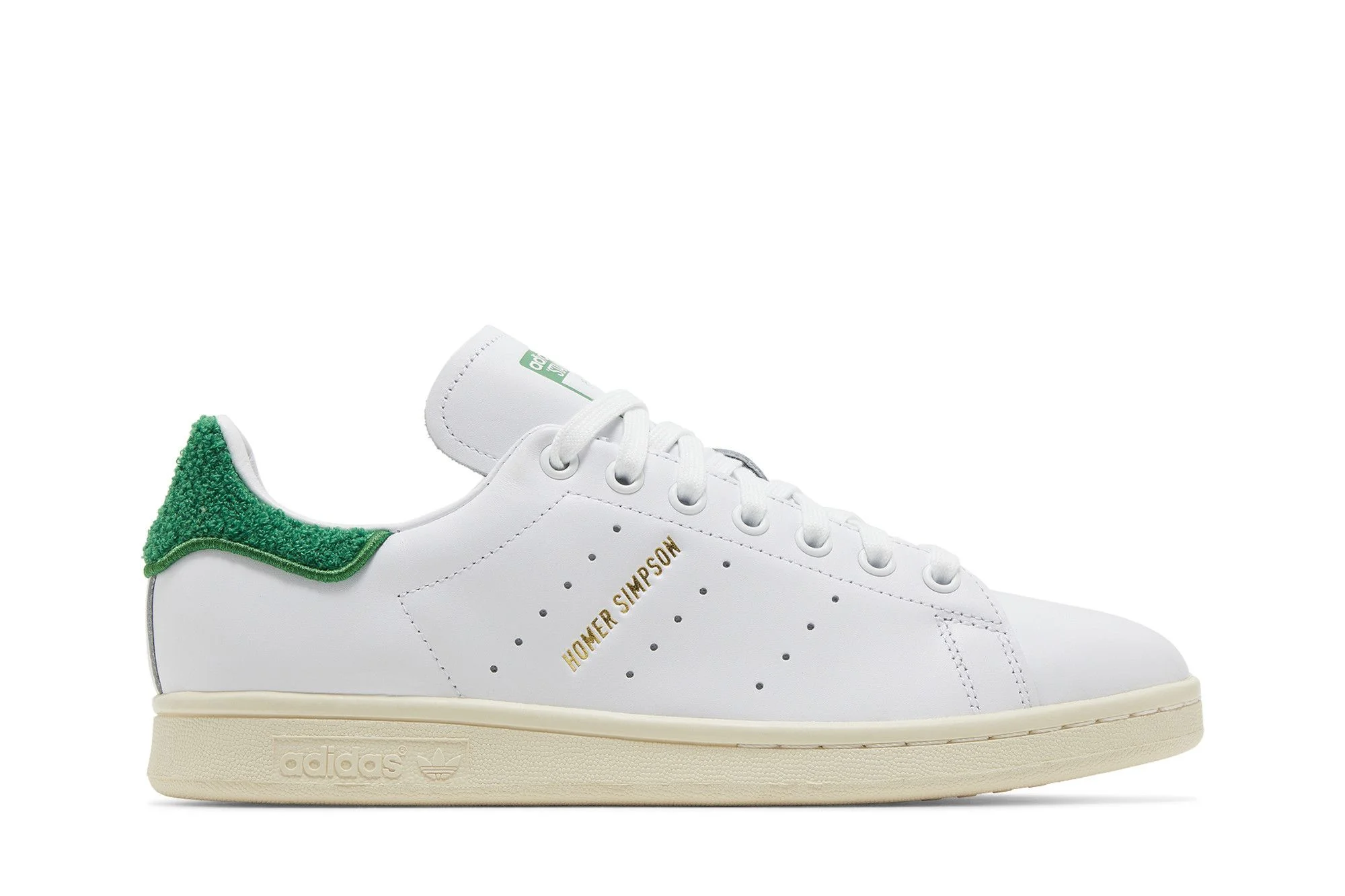 The Simpsons x adidas Stan Smith ‘Homer Simpson’ pays tribute to the iconic animated TV dad. The character’s name is stamped in gold-foil lettering on the white leather upper, while his likeness appears on the printed Stan Smith tag that adorns the tongue. The shoe’s standout feature takes the form of the heel tab, which depicts a snapshot of an instantly recognizable GIF — that of a wide-eyed Homer Simpson walking backward into lush green hedges. Underpinning the sneaker is a durable rubber cupsole in an antique cream-colored finish. UPPER MATERIAL Leather