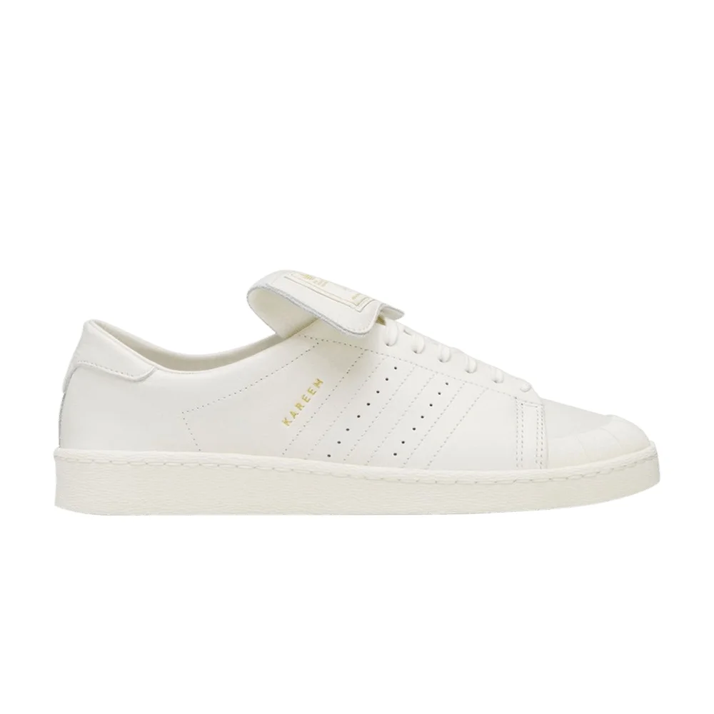 The Willy Chavarria x adidas Jabbar Low 'Off White Gold' delivers the American fashion designer's minimalist interpretation of the classic silhouette. The off-white leather upper features a slimmed-down collar and a rubber toe cap. Stitched three-stripes, along with perforated detailing, adorn the side panel. A fold-over tongue displays dual branding, while a debossed Trefoil logo appears on the back tab. Anchoring the sneaker is a matching white rubber sole unit. UPPER MATERIAL Leather
