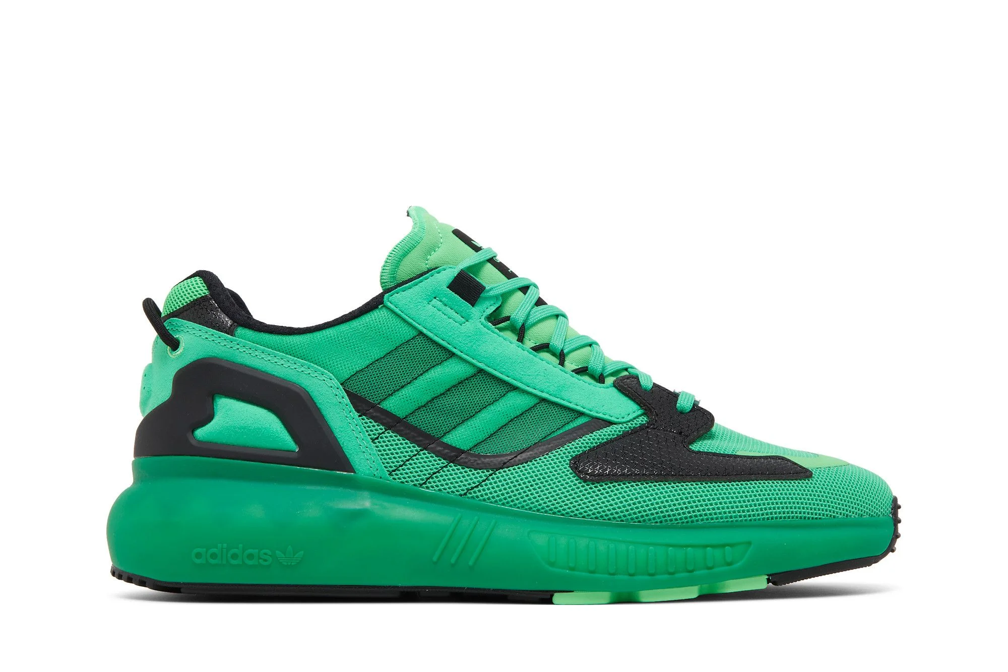 The adidas ZX 5000 Boost ‘Screaming Green’ applies a simplistic two-tone finish to a lifestyle runner built for everyday comfort. A vibrant green hue permeates the breathable mesh upper, featuring tonal suede overlays and contrasting black accents throughout. The sneaker’s Boost cushioning is entirely wrapped in semi-translucent TPU cage tinged in green. Underfoot, the rubber outsole is updated with cut-out sections in the heel that expose the white Boost midsole. UPPER MATERIAL Mesh