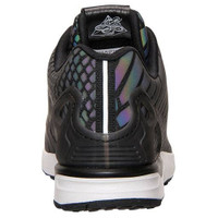 This adidas ZX Flux XENO features a matte black upper with XENO light-responsive technology. In natural light, the shoe appears matte black, but when exposed to artificial light, the upper shines with iridescence. Released in November 2015, the shoe also comes with a black sole.