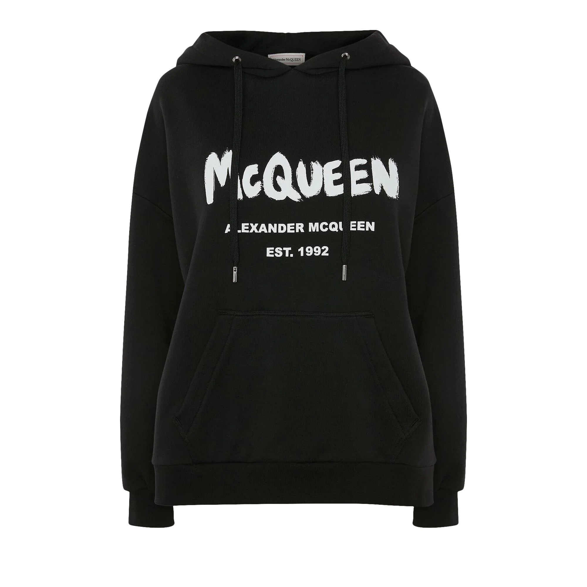 Mcqueen Graffiti Hooded Sweatshirt in Black/ivory