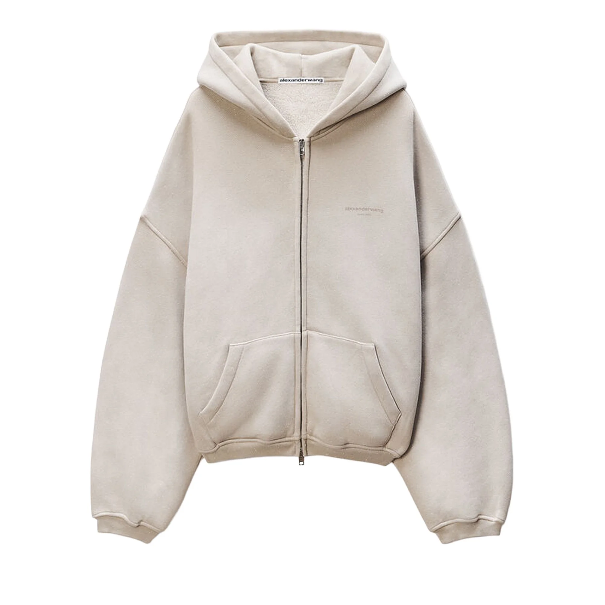 Alexander Wang Zip Up Hoodie with Allover Hotfix 'Washed Khaki'