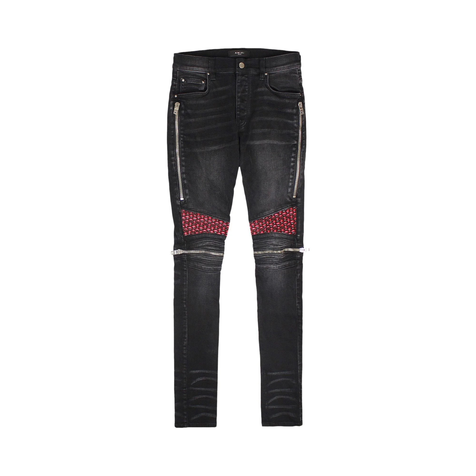 AMIRI Pink Velvet PJ MX2 Skinny Jeans Black