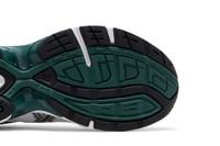 The ASICS Gel 1130 'White Dark Neptune' carries an airy white mesh upper designed for maximum breathability. Durable synthetic leather overlays, along with the signature tiger stripes, feature a shiny metallic silver finish with dark emerald accents. The retro runner is mounted on a white EVA foam midsole with visible Gel cushioning in the heel. Underpinning the sneaker is a durable rubber outsole, fitted with ASICS' stabilizing TRUSSTIC support system.