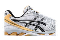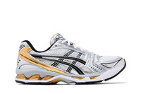 The ASICS Gel Kayano 14 ‘White Pure Gold’ highlights polished details on a performance running shoe originally released in 2008 — the first installment in the Kayano line designed by Hidenori Yamashita, who took the creative reins from the franchise’s original creator and namesake, Toshikazu Kayano. This pair features a breathable a white mesh upper reinforced with synthetic overlays in metallic silver and gold. Additional gold accents distinguish the visible Gel inserts nestled in the dual-density EVA foam midsole. UPPER MATERIAL Mesh