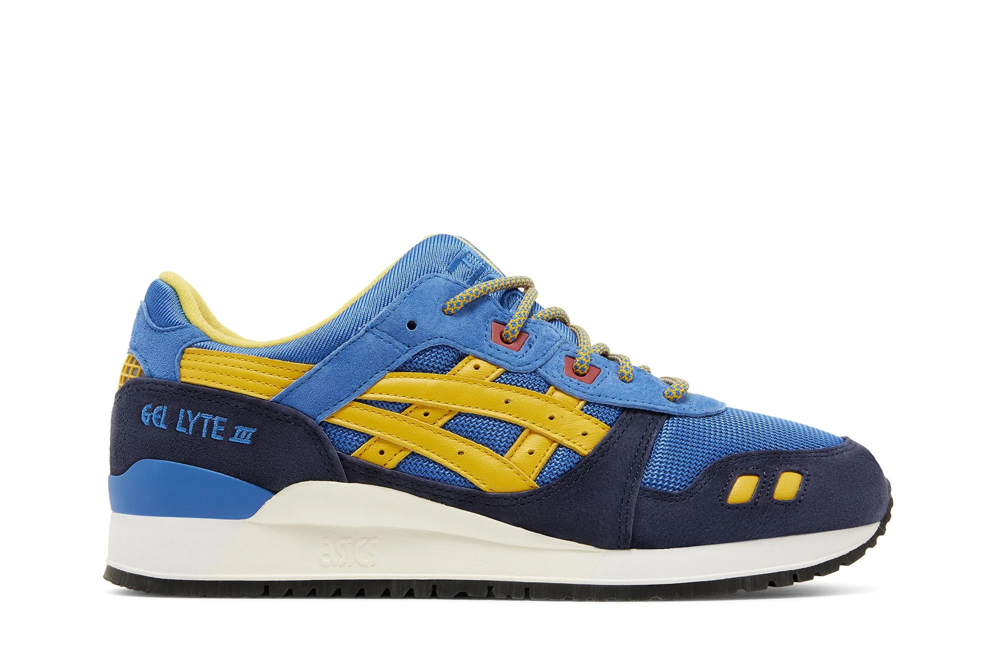 The Kith x ASICS Gel Lyte 3 ‘Cyclops’ represents one of seven special-edition colorways celebrating the 60th anniversary of Marvel Comics’ X-Men franchise. Inspired by Cyclops’ laser eyes and suit, the lifestyle runner features a blue mesh upper with navy suede overlays, yellow leather side stripes and crimson eyelets. In addition to a ‘Cyclops’ label on the insole, unique branding hits include ‘X-Men’ and ‘Fieg’ embroidered on the split tongue of each shoe. The sneaker rests on a crisp white EVA midsole with Gel cushioning in the heel. UPPER MATERIAL Suede