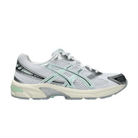 The ASICS Women's Gel 1130 'White Mint Tint' sports an airy white mesh upper, fortified with synthetic overlays in matching white and metallic silver. Tiger stripes adorn the side panel in a mint green hue. Performance benefits include a lightweight EVA midsole, treated to a vintage off-white finish with a visible Gel insert in the heel. Underfoot, the rubber outsole provides reliable traction, while ASICS' TRUSSTIC support system offers torsional rigidity. UPPER MATERIAL Mesh