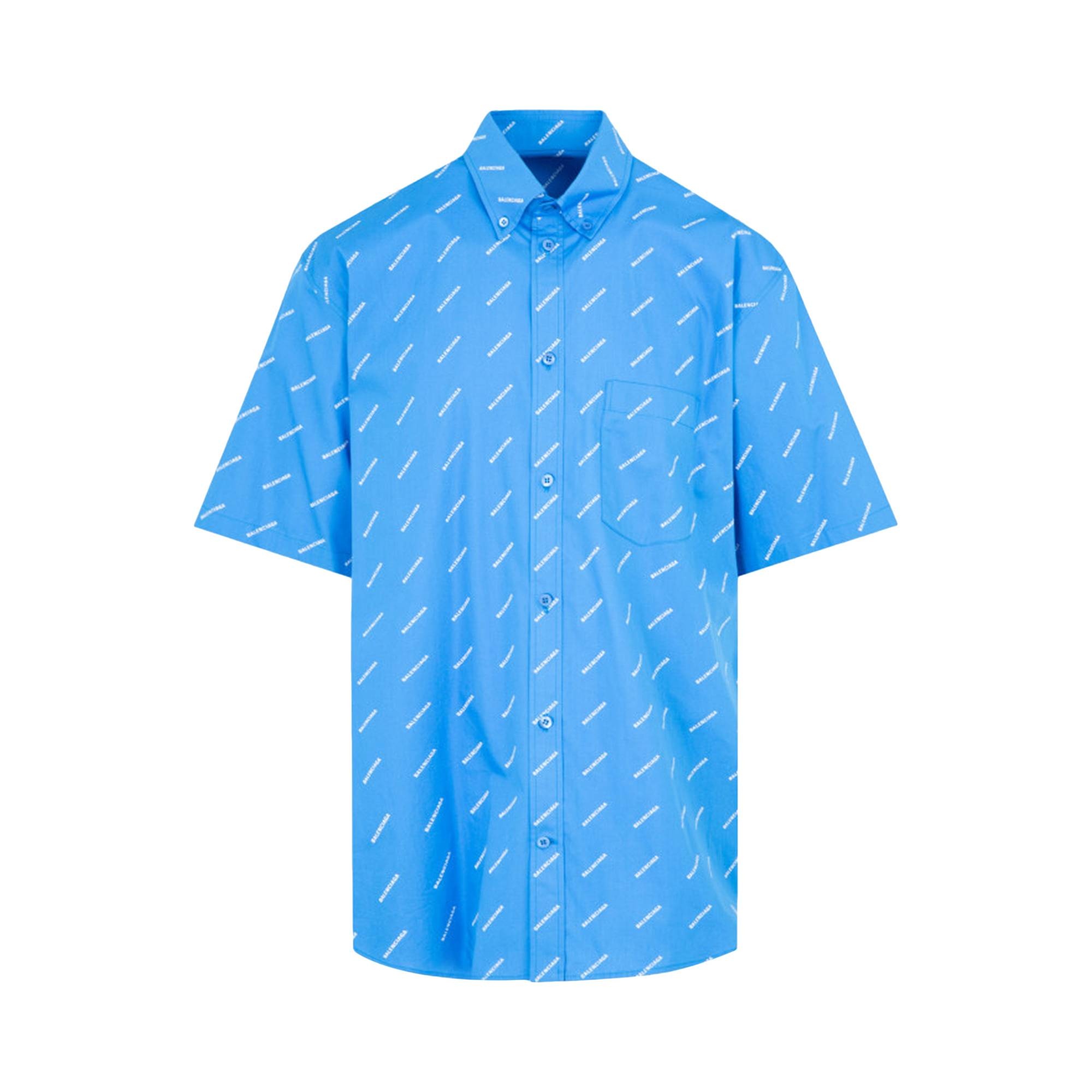 Balenciaga All Over Logo Button Down Shirt 'Blue'