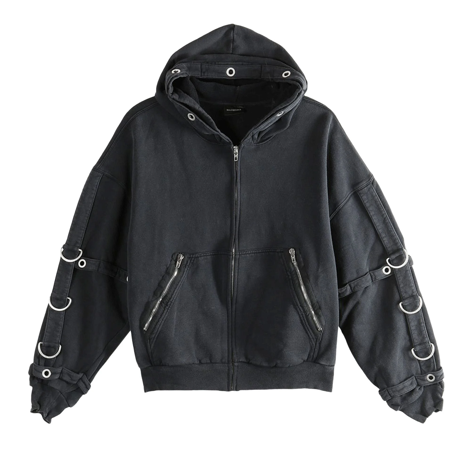 Balenciaga Cargo Zip-Up Hoodie 'Faded Washed Black'