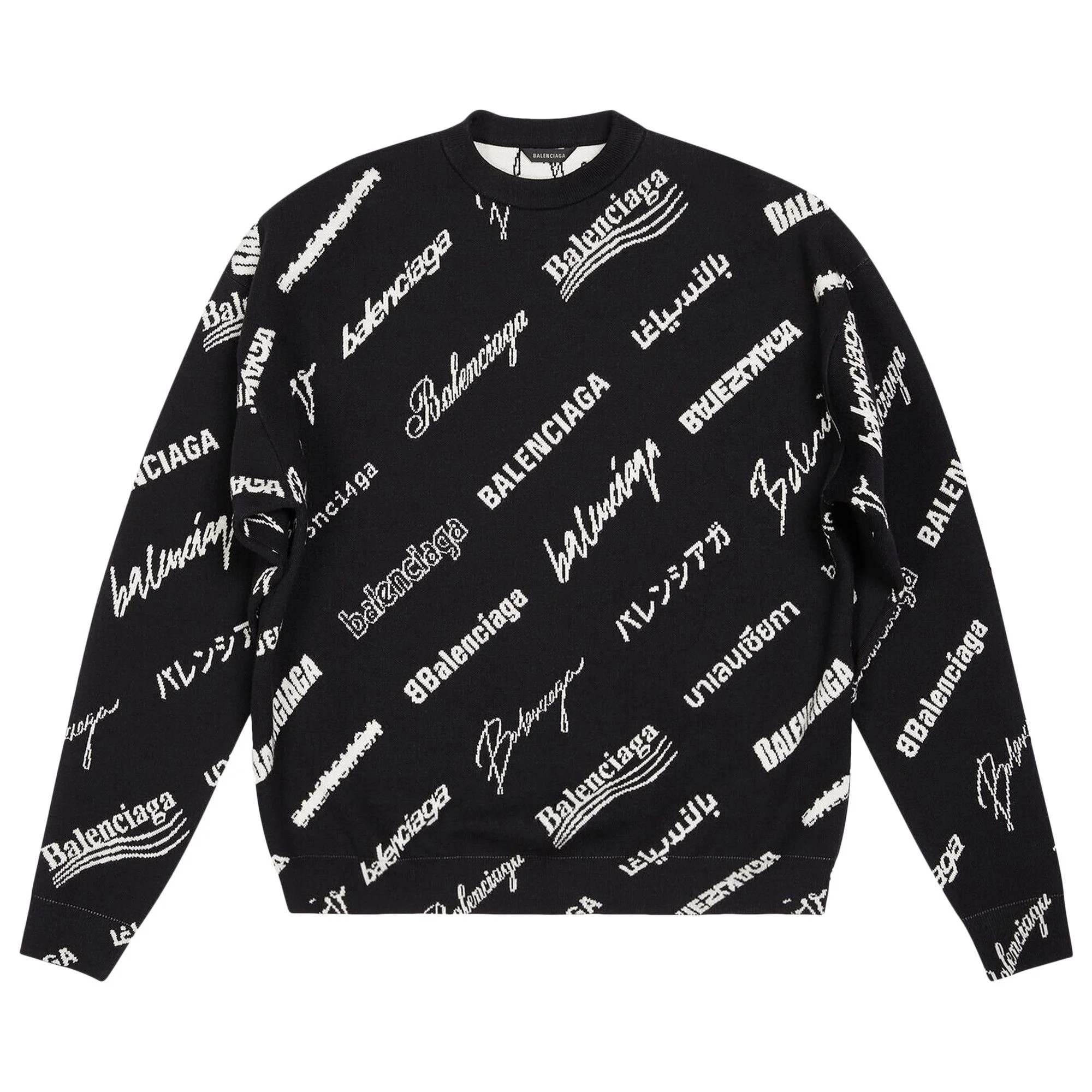 Balenciaga Allover Logo Print Crewneck Sweatshirt 'Black White' 724858T16651070