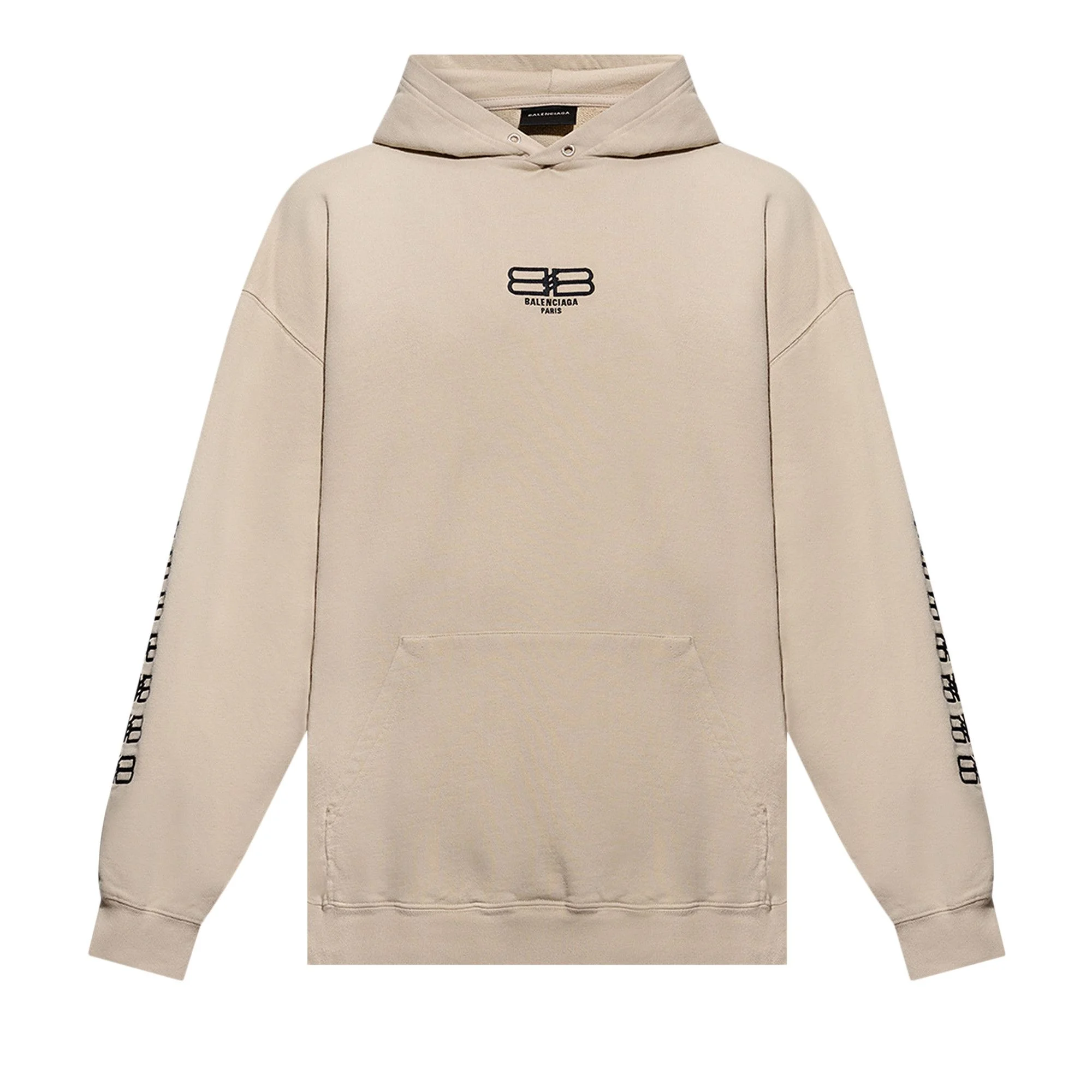 Balenciaga Embroidered Sleeve BB Logo Popover Hoodie 'Beige/Black'