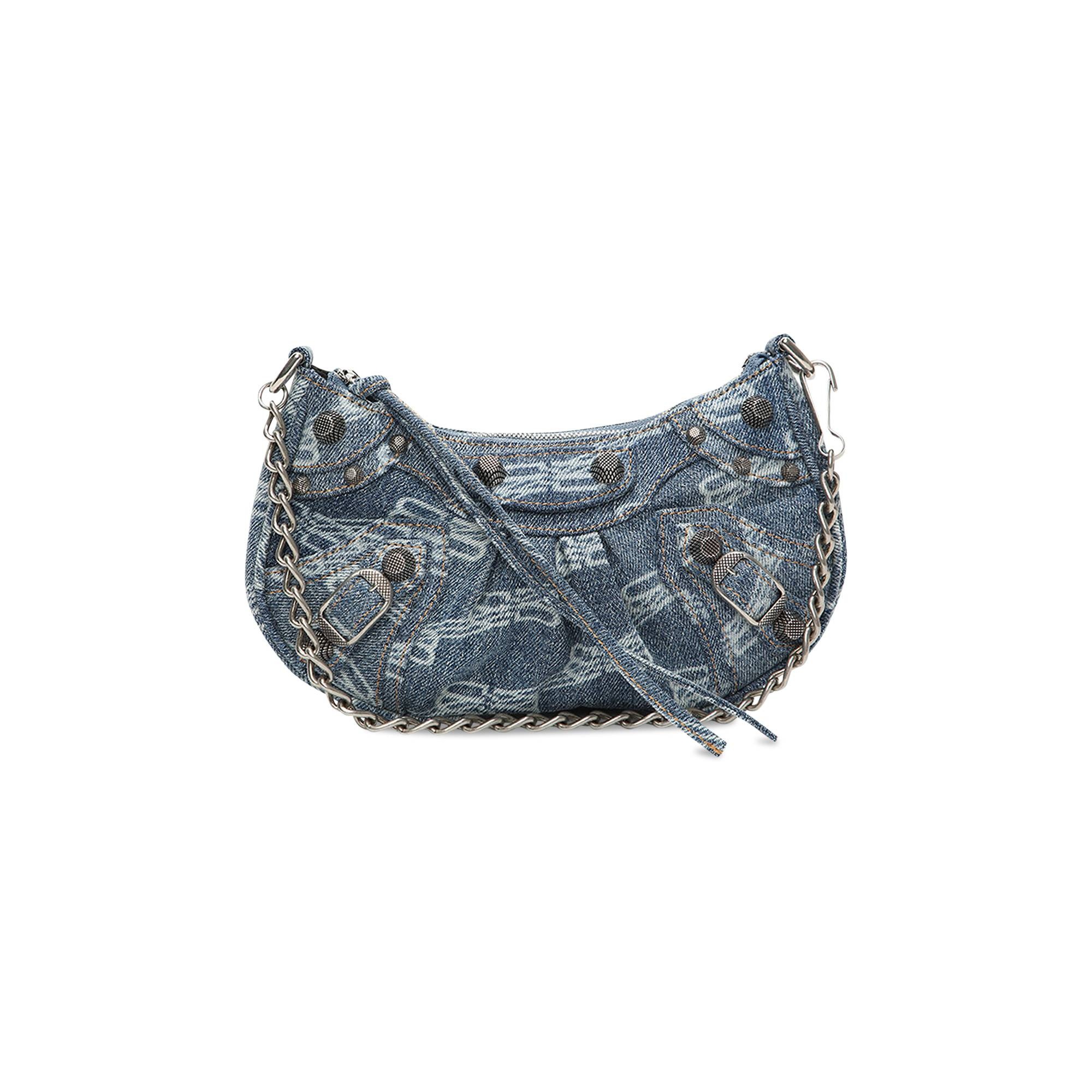 Women's Le Cagole Mini Purse With Chain Bb Monogram Bleached Denim in Blue