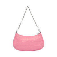 Women's Le Cagole Mini Purse With Chain Crocodile Embossed in Pink