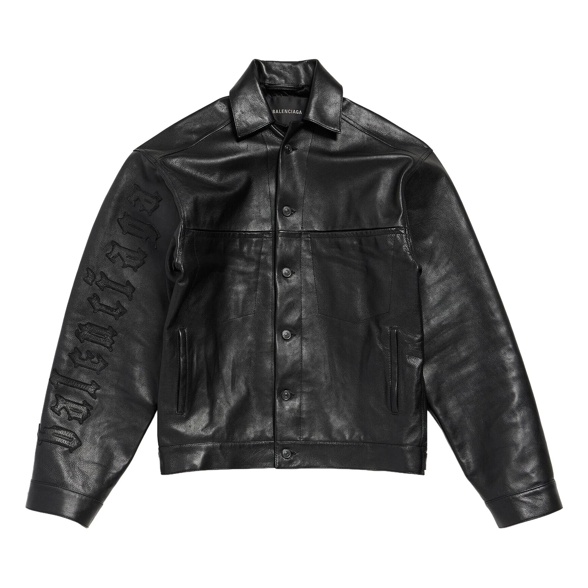 Shirt Jacket in black grainy soft leather for Men PRODUCT DETAILS • Grainy soft buffalo skin • Shirt collar • 6 button front • 2 pockets at chest • 2 slash pockets • Buttoned at cuffs • Adjustable buttoning at waist • Gothic denim artwork embroidered on right sleeve • Made in Italy Main material: 100%buffalo